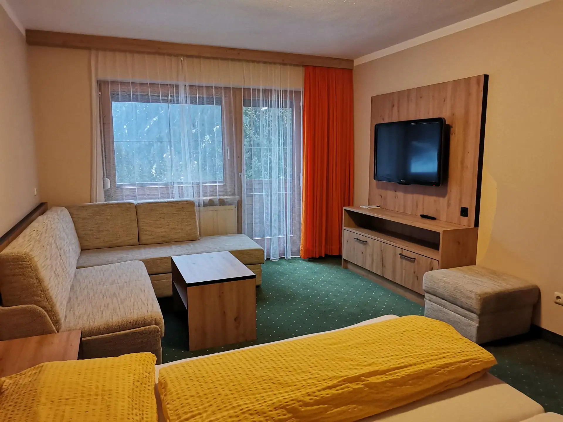 Wohnschlafzimmer mit Doppelbettzimmer und Sofa